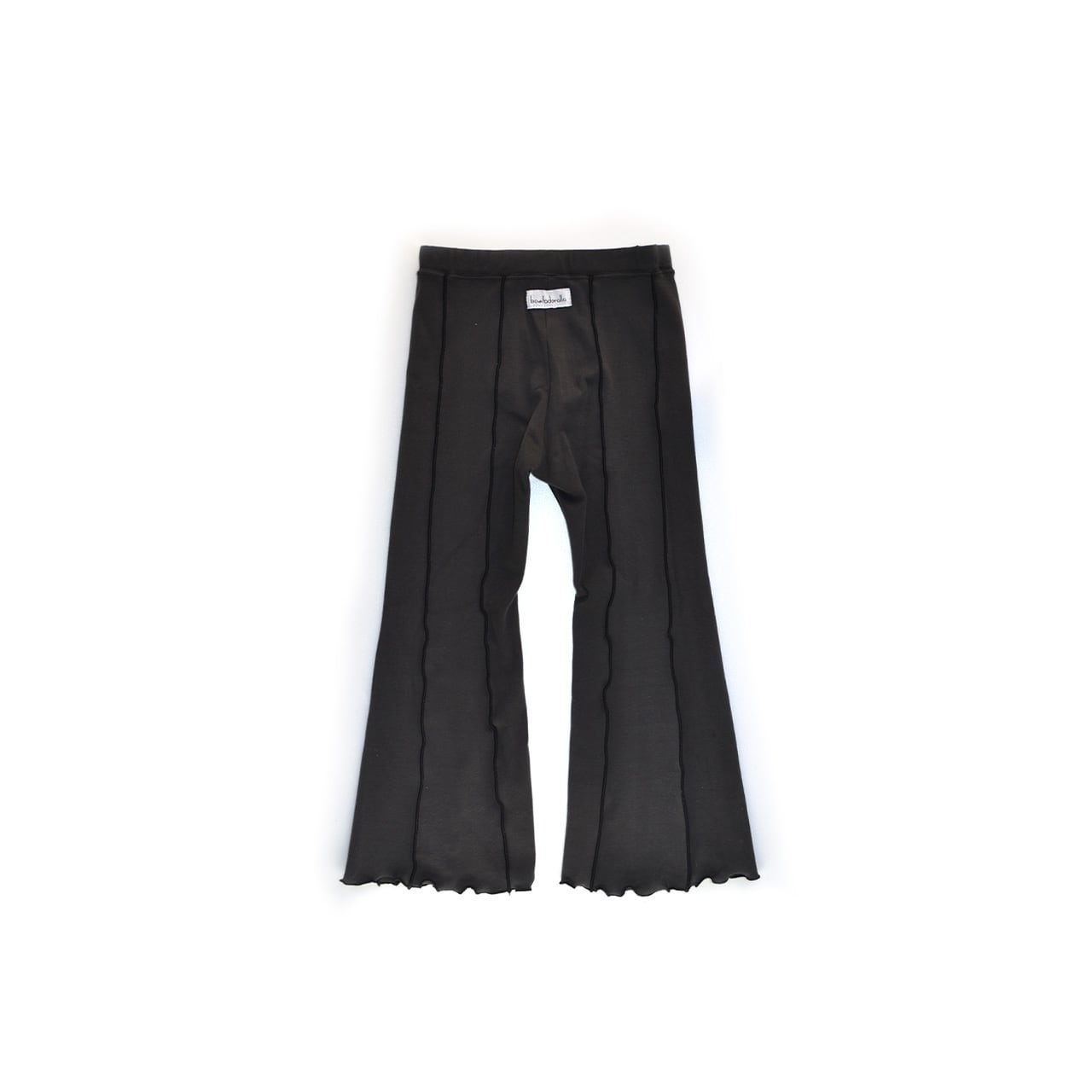 毛羽立ちを抑えた糸で編み立てた、高密度でキレのあるカットソー素材を使用したフレアパンツ。