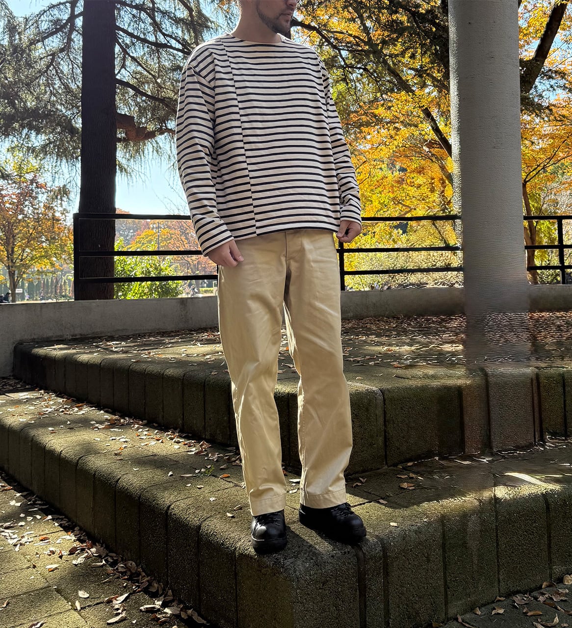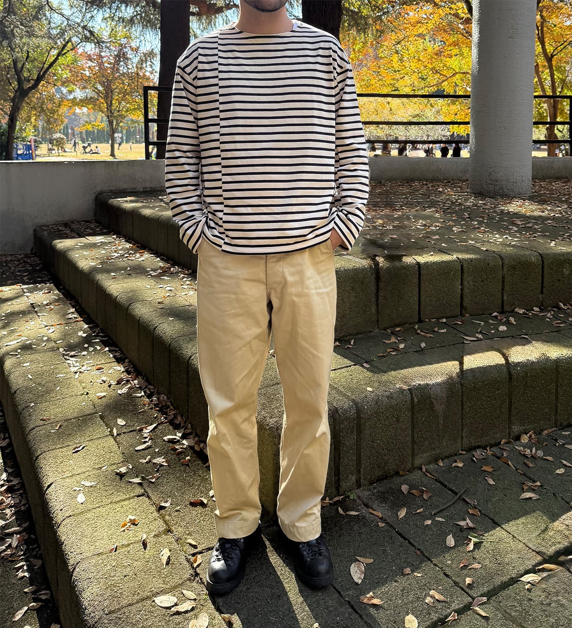 薄く起毛した生地は、軽さとしっかり感のバランスが絶妙。